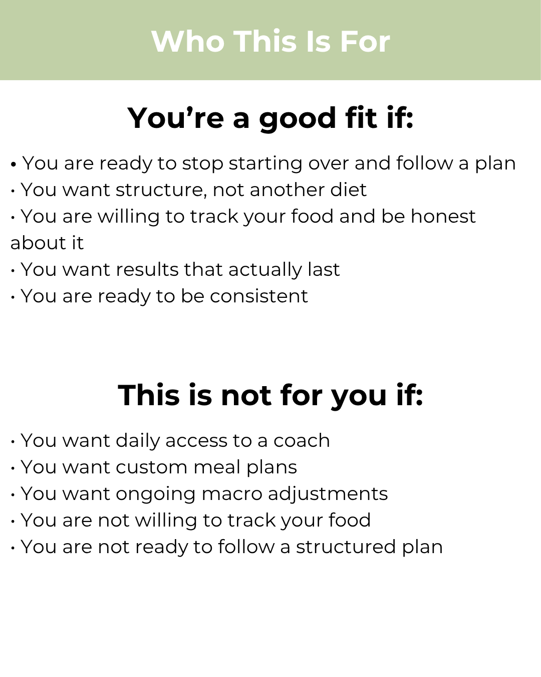 Group coaching for women who want structure, accountability, and real results, even with busy weeks, meals out, and travel.